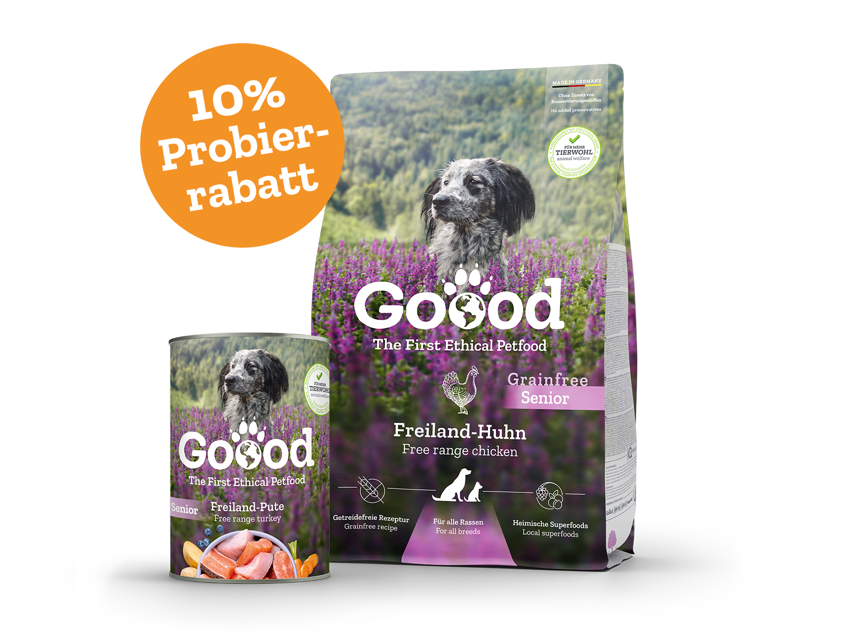 Bei uns im Familienunternehmen steht die artgerechte Hundeernährung Tag für Tag im Mittelpunkt unserer Bemühungen. Wir setzten auf zertifiziertes Fleisch, regionale Zutaten, heimische Superfoods und klimafreundliche Herstellung. Mit Goood ernährst du deinen Hund nicht nur gesund und lecker, sondern tust gleichzeitig etwas Gutes für die Tiere und unseren Planeten. Dafür wurden wir mit dem Ethical Award ausgezeichnet und auf die Top 200 Liste der ethischsten Unternehmen weltweit gesetzt.