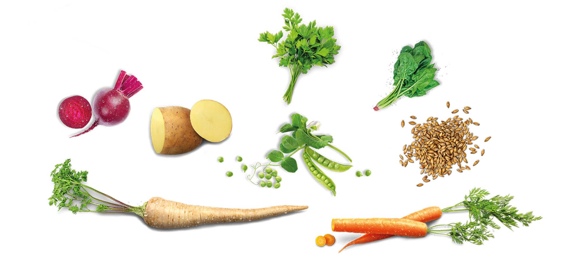 Viele unsere hochwertigen Zutaten wie Pastinake, Kartoffel, Karotte und Vollkorngerste stammen von Bauernhöfen aus der Region. Das Gemüse aus regionaler Landwirtschaft hat einen natürlich hohen Nährstoffgehalt. Hochwertige Vitalstoffe wie Alpenhanf, Muschelfleisch oder Leinsamen runden die naturnahe Ernährung ab. Unser Futter gibt es für jedes Alter und jede Größe sowohl getreidefrei, glutenfrei, weizenfrei als auch mit wertvollem Vollkorn.
