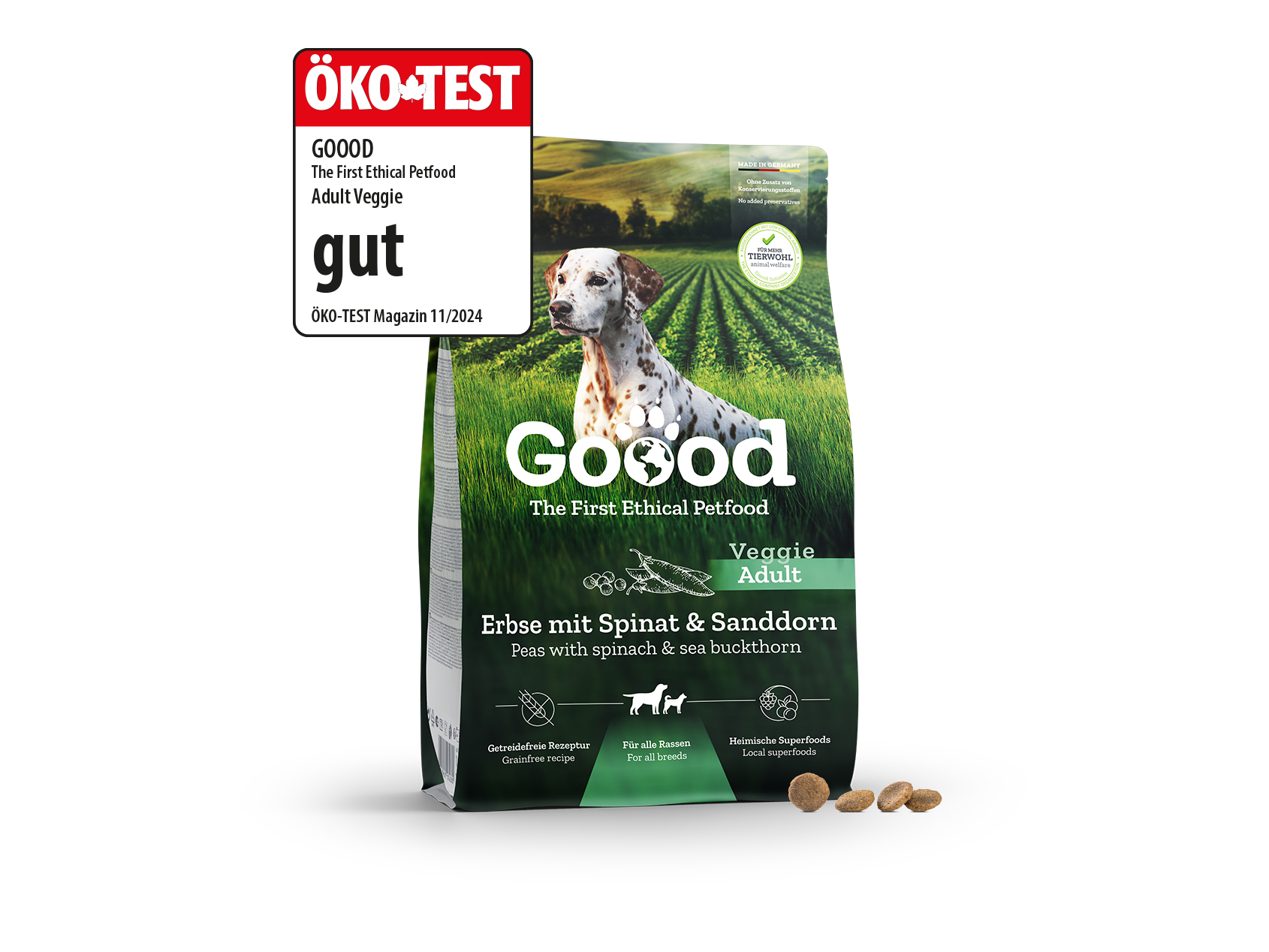 Goood wurde als erste deutsche Hundefuttermarke mit dem Ethical Award für Nachhaltigkeit und ethisches Handeln ausgezeichnet. Das unabhängige Institut "The Ethical Company Organisation" hat uns in den Bereichen Umwelt, Tierwohl, Soziales Engagement und Unternehmensrichtlinien geprüft und mit 100 Punkten die Höchstbewertung gegeben.