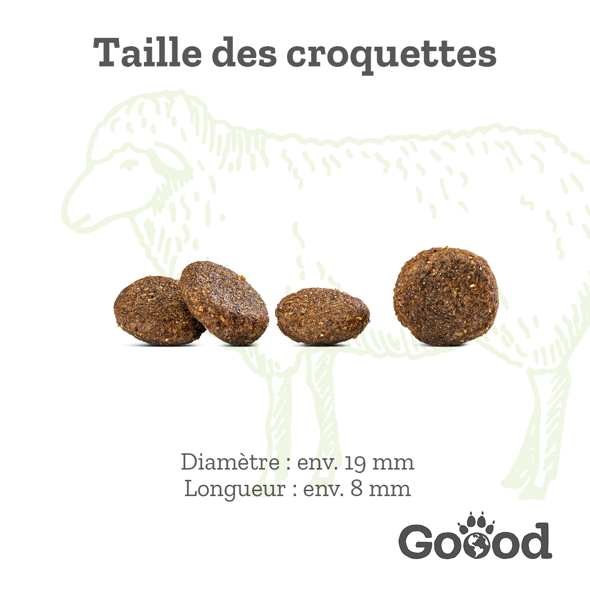 L'agneau contient une bonne portion de protéines et des minéraux importants comme le fer et le calcium. Nos moutons et agneaux profitent de l'air frais toute l'année et broutent dans les prairies. Car nous nous approvisionnons exclusivement en viande d'agneau provenant d'élevages en plein air contrôlés. La carotte et le panais proviennent directement de notre région. La recette sans céréales est adaptée aux besoins des chiens de grande taille. Elle n'a pas besoin d'ajout de sucre, colorants, arômes ou de conservateurs artificiels. Même si ton chien souffre d'intolérances alimentaires, il appréciera notre aliment très digeste.
