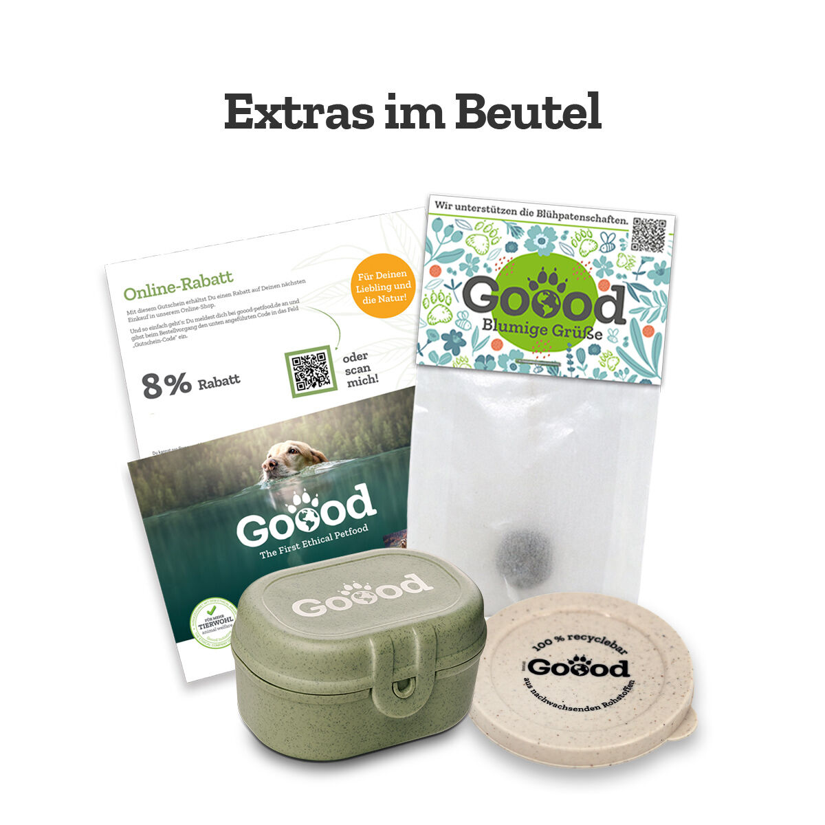 - Attraktiver Gutschein für deinen nächsten Einkauf: Entdecke die Goood Futtersorten und spare mit dem Nachkaufgutschein bei deiner nächsten Bestellung.